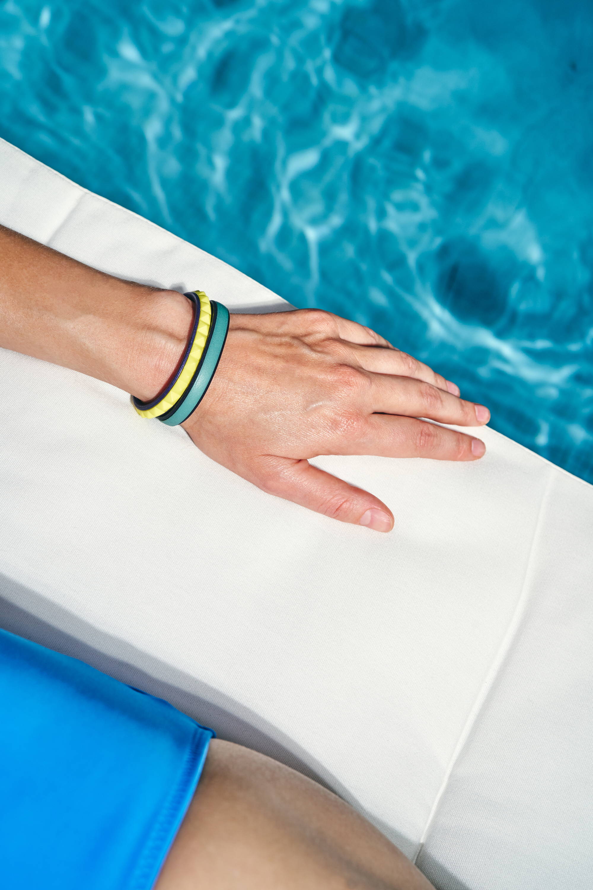 Poolside comes with a blue Character (the core of every Nyyukin) combined with Moments (the flexible inlays) in refreshing summer yellow and posh green. Or choose Sundowner with a Character in elegant burgundy combined with Moments in seductive lavender and sunny red.